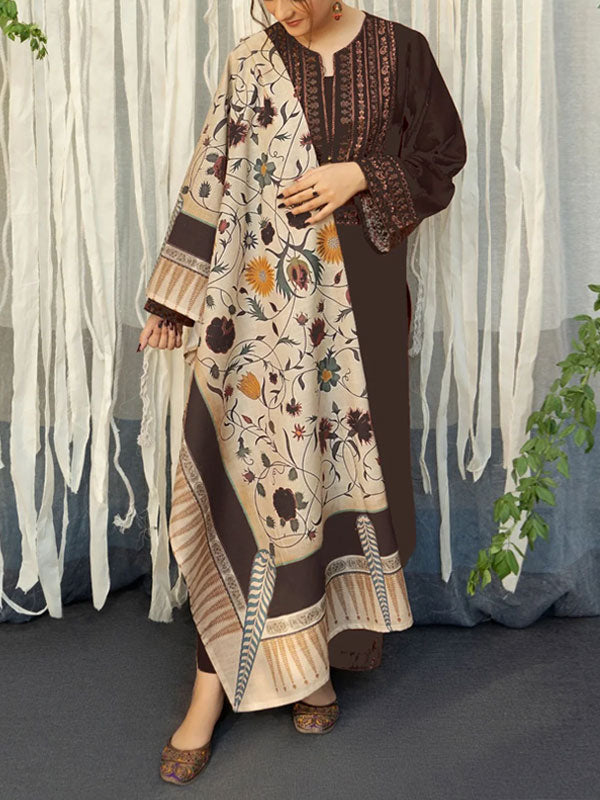3PC EMBROIDERED DHANAK SUIT